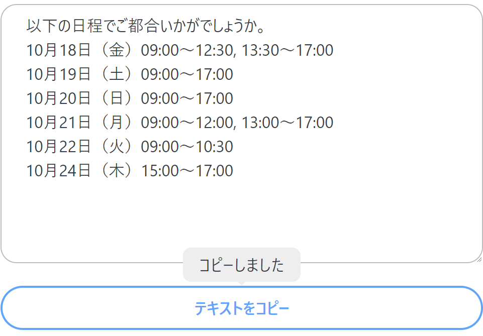 日程調整用テキストをコピーします。細かい修正がある場合は、テキストを編集することができます。